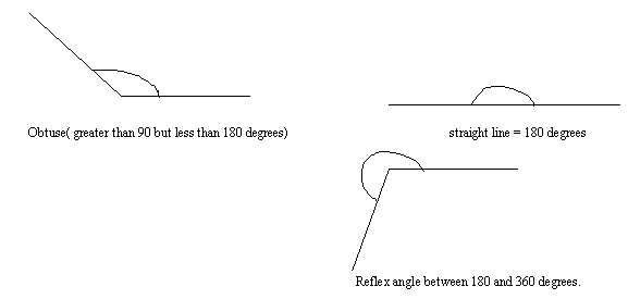 | 170 | Obtuse | > (greater than) 90 degrees |