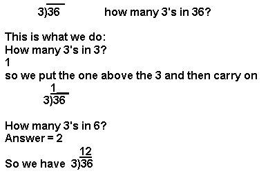 If we have the number 36 and we want to know how many 3's we have in 36. We write this