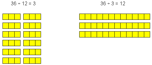 We can break 36 into groups of 12 ( we would have 3 groups), or we could break up 36 into groups of 3 and have twelve of them.
