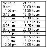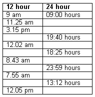 Here is a table with a mixture of 12 and 24 hour systems .Can you convert between the two?