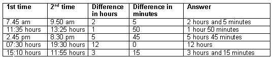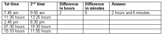 To finish off, find the difference between the times in the table. This will be very useful for the SATS.