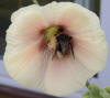 pollinating, a hollyhock flower. You can clearly see the pollen