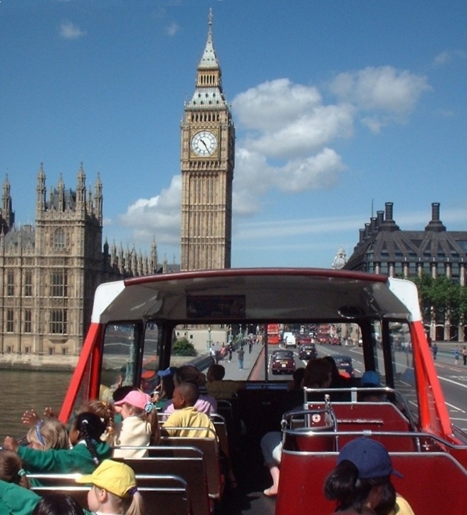 possible for tourists to take a guided tour in an open topped bus. These children are