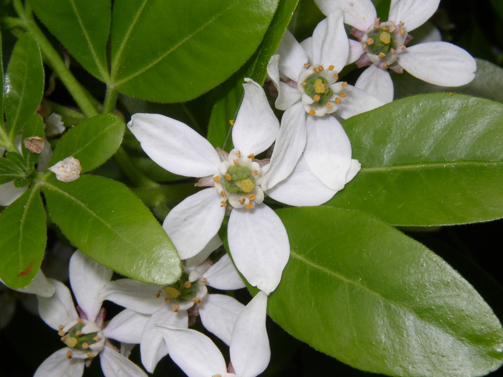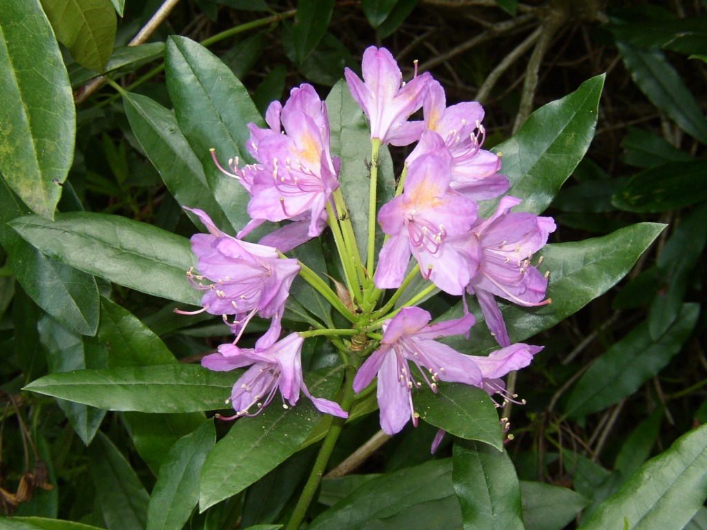 Solanum is the plant that gives its name to the family Solanacea. The family includes potatoes, tomatoes and the nightshades (both deadly and woody). These flowers are typical of the family. Flowers of Choisya (Mexican Orange Blossom) clearly showing their structure in 5X  radial symmetry. The tiny white bells of Lily of the Valley grow in shady corners of the garden in early summer. They have elongated leaves with parallel veins that are typical of monocotyledenous plants. When Rhododendrons flower it is a sure sign that Summer has really started.