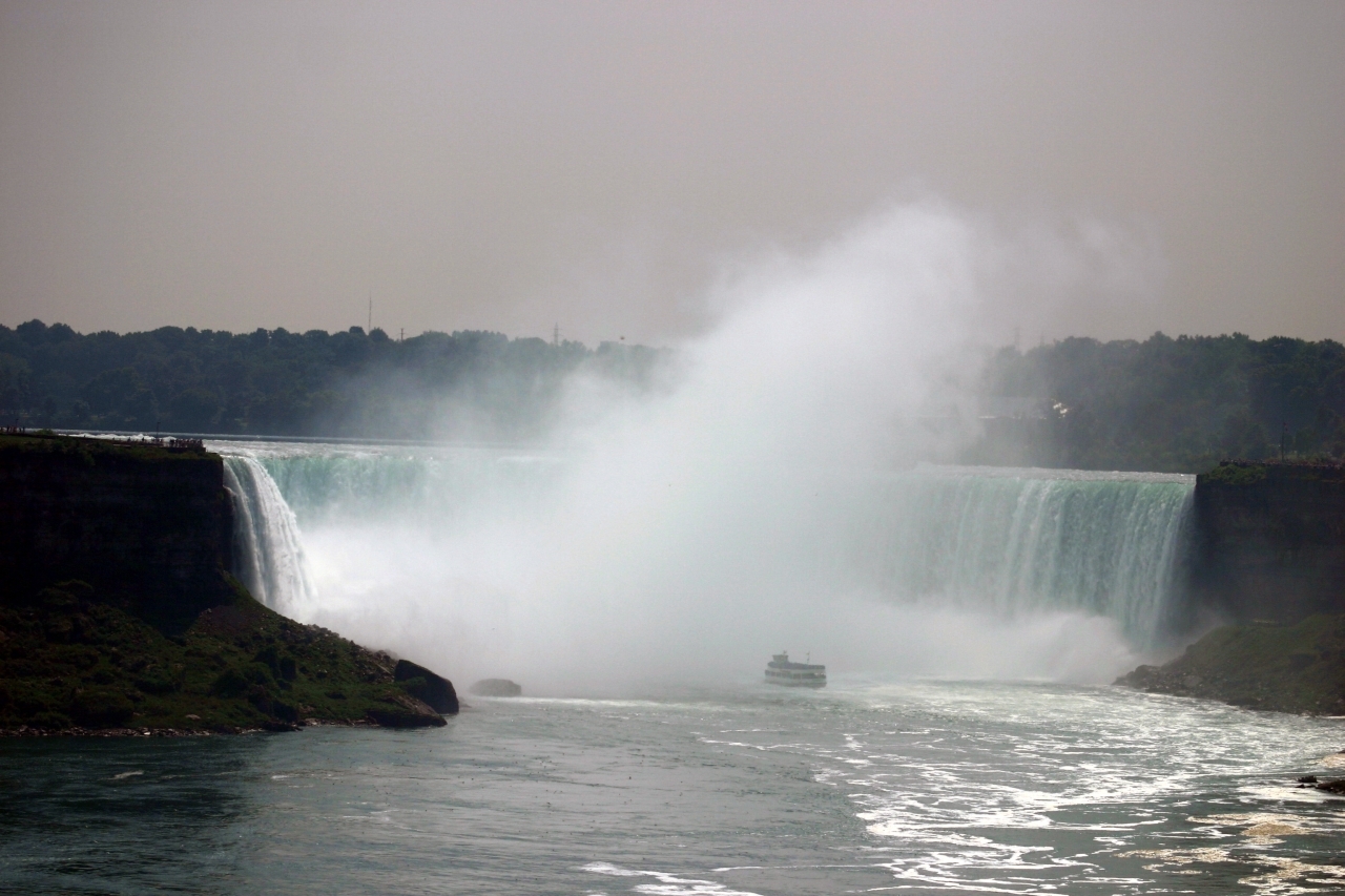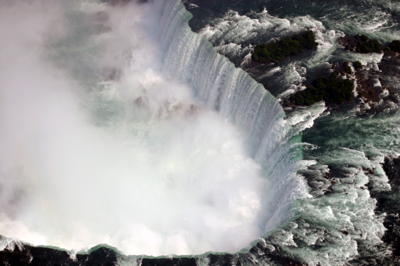 American Falls, Niagra, taken from the air. 2 views of Horseshoe falls, Niagra, one from the air, the other from the Maid of the Mist (the boat that takes visitors to Niagra right up to the falls).