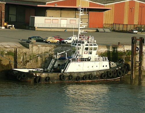 The Lifeboat "Grace Darling", named after a famous Northumbrian girl, who gave her life to save others. A tug, berthed at Calais Ferry Terminal